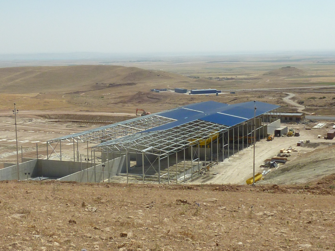• Beschreibung: Stahlhallenkonstruktion für den Neubau einer Müllsortier- und Kompostierungsanlage in Dohuk, Irak